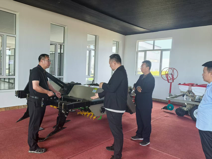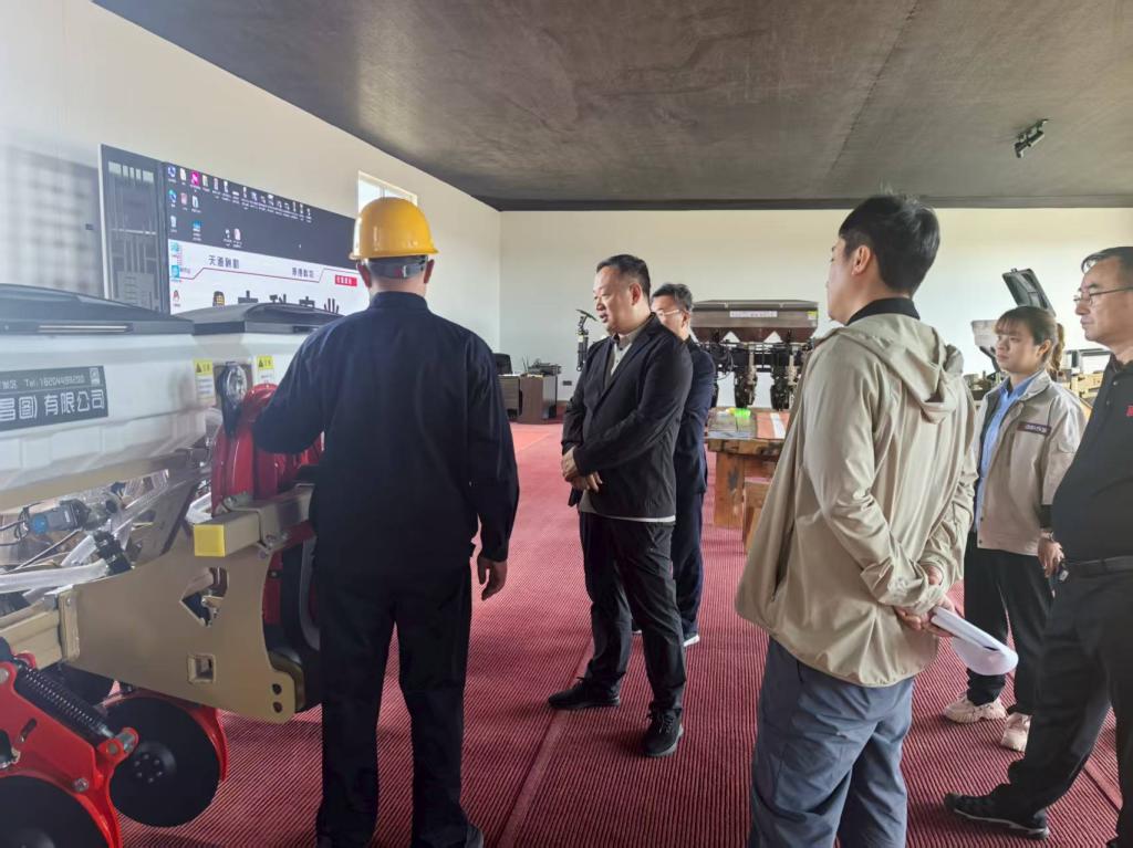 调研组一行实地参观了企业智能农机装配车间和产品展厅,现场观摩了新型智能深松整地机、全自动智能轻量型播种机等先进装备的作业演示。该系列产品采用全电控智能控制器并搭载北斗导,农机手在驾驶室即可通过语音指令直接调整作业参数,无需停车手动操作,显著提升了黑土地保护性耕作的精准化水平。